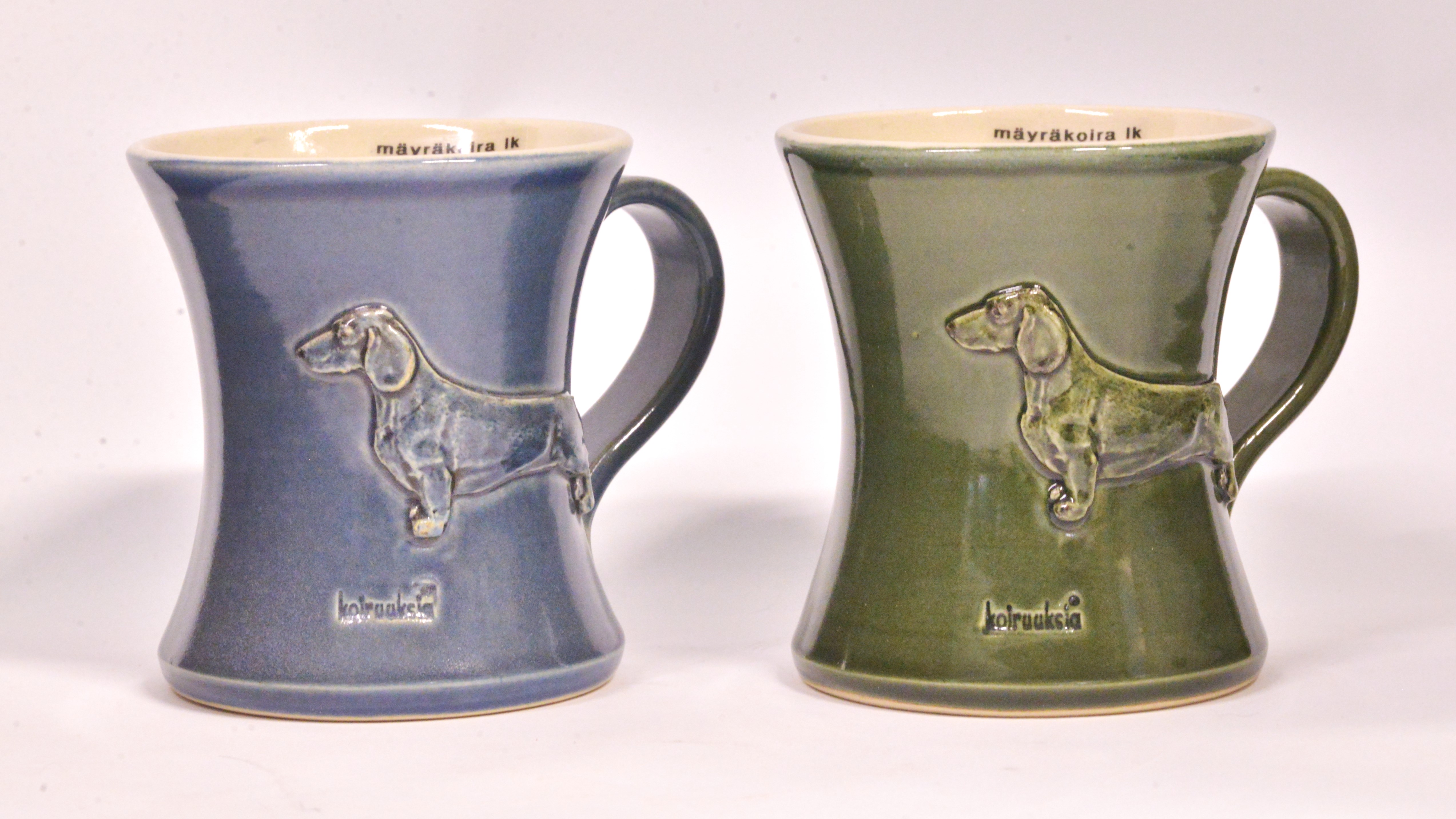 Rintaneulat ja magneetit maalataan käsityönä ja väreinä käytetään keramiikkaan soveltuvia värejä. Värit eivät aina ole ihan yksi yhteen koirien luonnollisten värien kanssa.